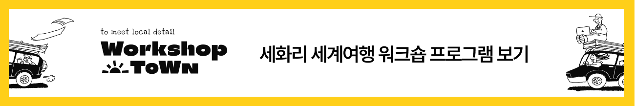또 동네에서 가게를 운영하면서 좋은 마인드의 이웃 사장님들을 많이 알게 되었는데요, 흥미롭게도 이분들이 다들 세계여행을 다니셨던 경험이 있더라고요. 심지어 그 여행지에서 좋았던 경험을 바탕으로 가게를 운영하고 계시고! 그래서 이분들의 콘텐츠를 세화리의 로컬 프로그램으로 연결하면 좋겠다고 생각해서 <세계여행>이라는 이름의 투어 프로그램을 만들었어요.